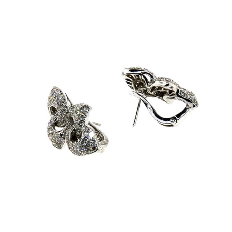 18kt white gold pave diamond leaf earrings total 2.29 ctw. Their interlocking design makes the diamonds shine, as you can see them from every angle.