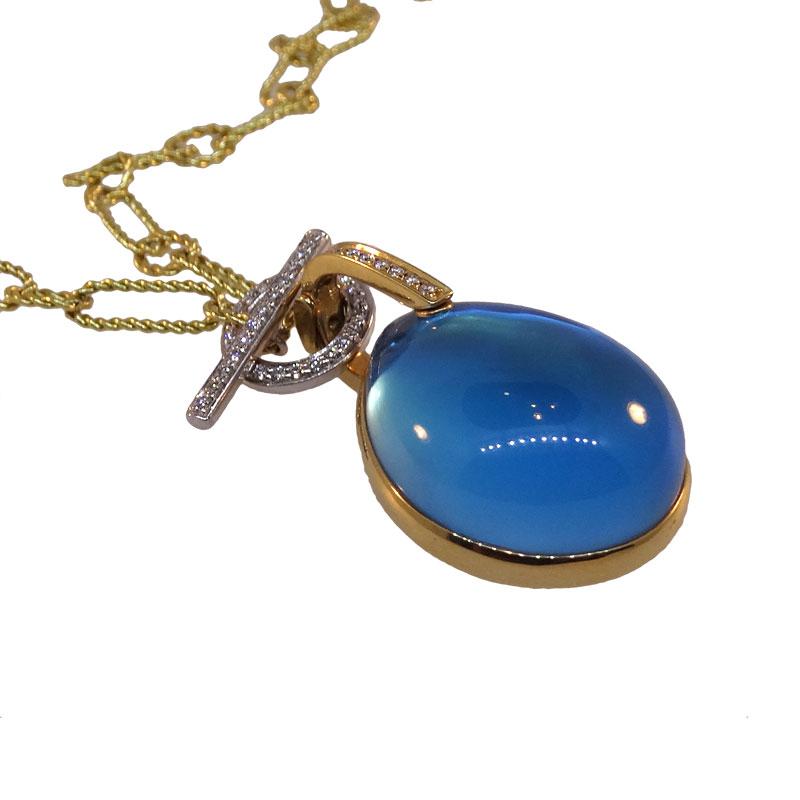 Jenny Perl designed ruby slices are set in 18kt y/g and surrounded by diamonds. The two slices are brought together by a single diamond, giving it a more dramatic drop look.