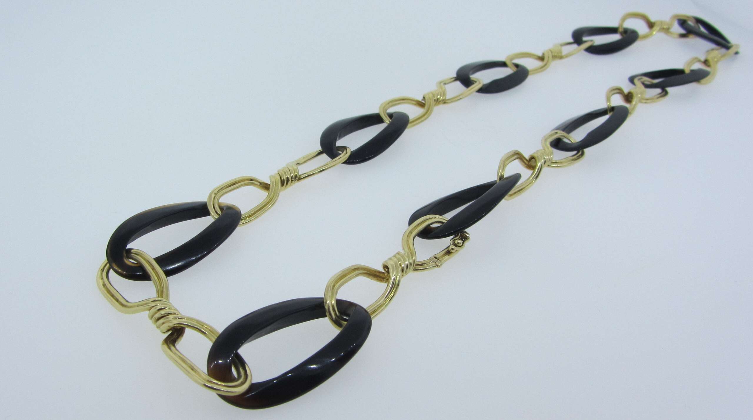 18kt yellow gold and tortoise link necklace. 22″ long.