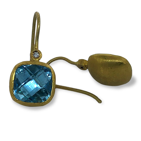Yellow Gold Silver Cushion Blue Topaz 11.09 CTW with Diamonds