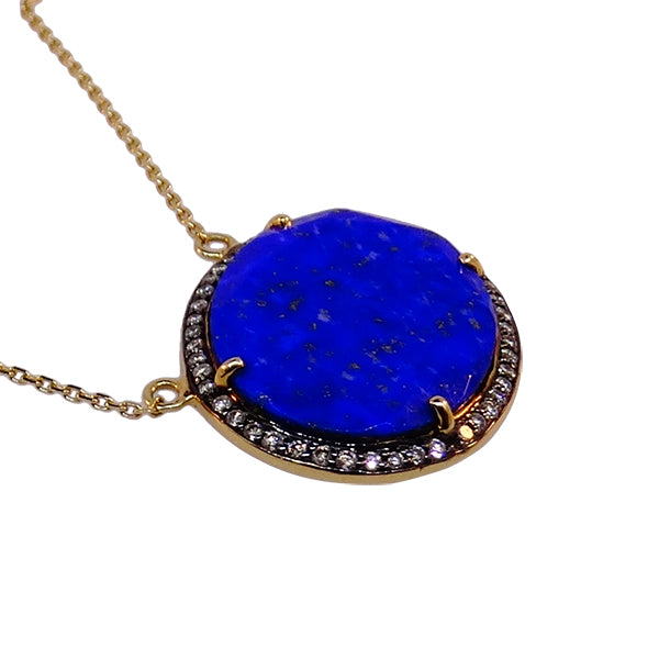 18K Gold, 5.97CT Lapis and .27CTW Diamond Necklace.