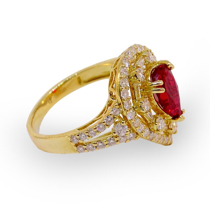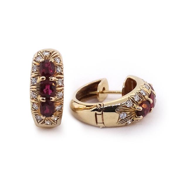 14K Yellow Gold, Ruby and Diamond Hoop Earrings