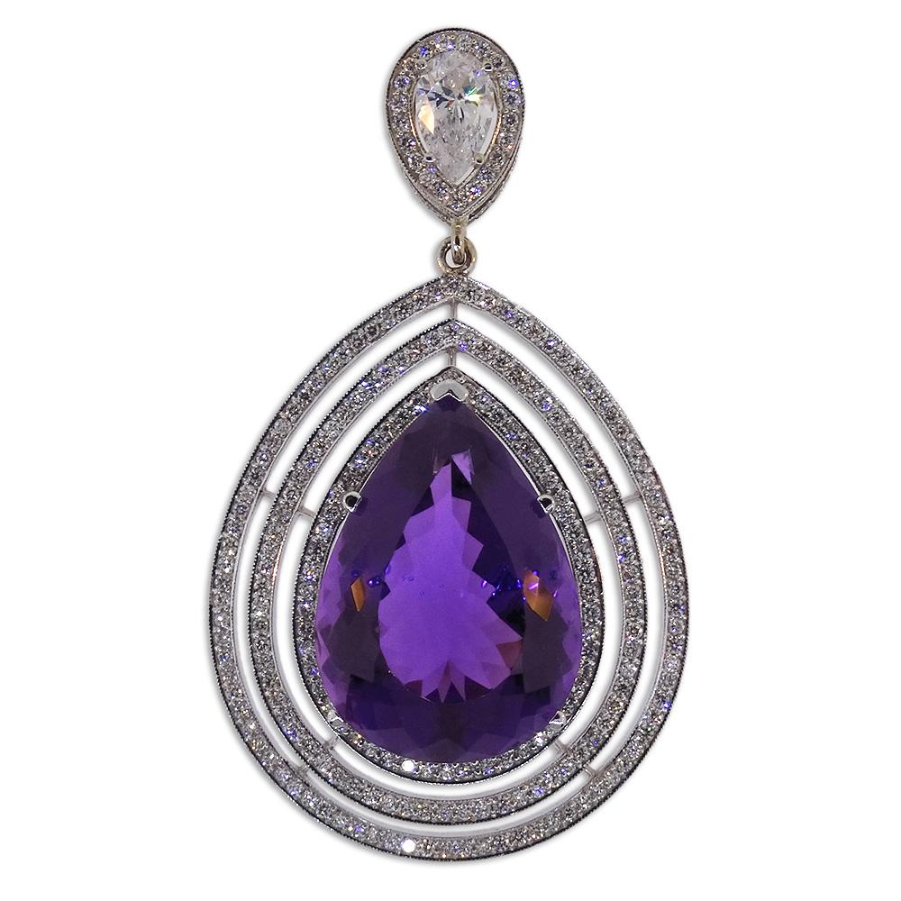 Natural 61.88CT Amethyst 18KT. W/G DIA 7.32CTW Pendant