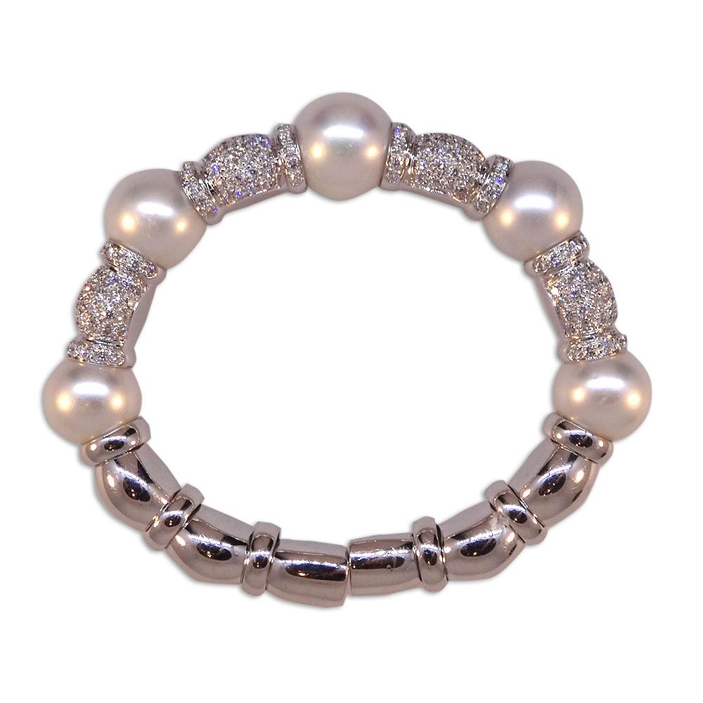 18KW Dena Kemp White Gold 13mm (5) Pearls and 5.34CT DIA Bracelet